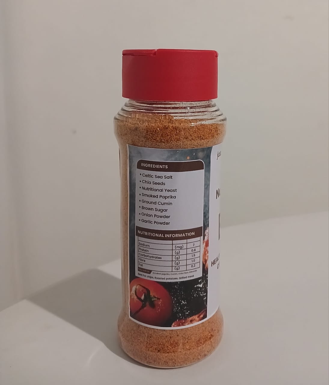 Bring the braai experience straight to your kitchen with NutriSprinkle Smoky BBQ. Crafted with Celtic salt, chia seeds, smoked paprika, cumin, garlic, and a hint of natural sweetness, this blend gives you that authentic smoky flavor without artificial additives.